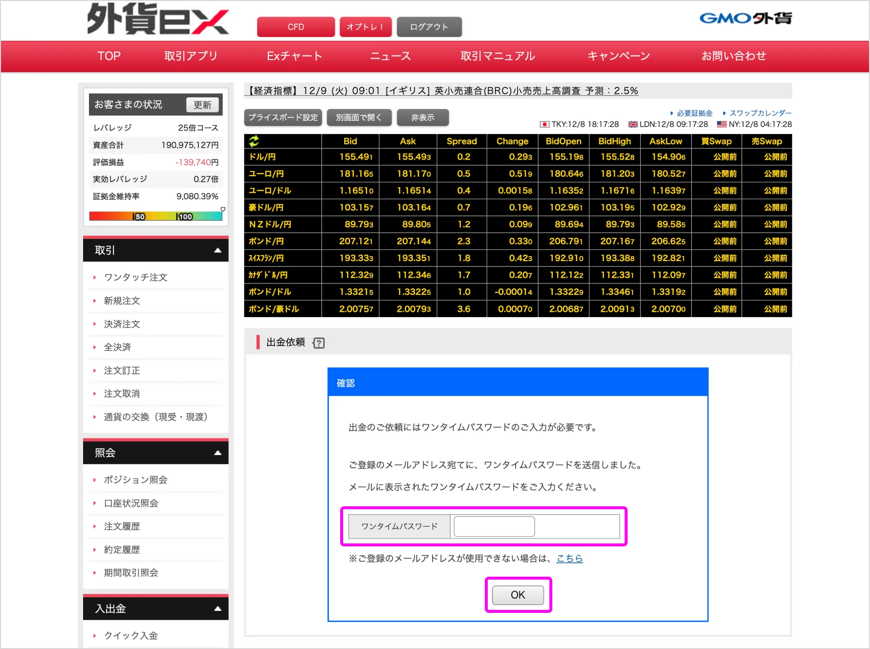 出金依頼を行います。