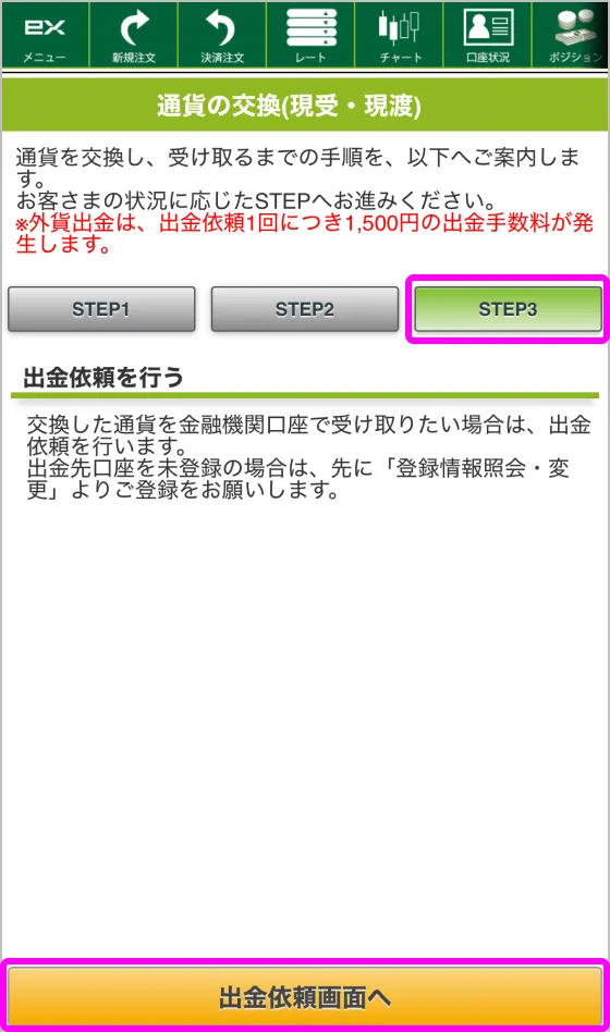 「出金依頼画面へ」をクリック。